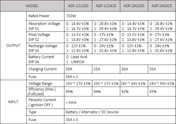• Compatible with Lead Acid, LiFePO4, Gel and AGM batteries