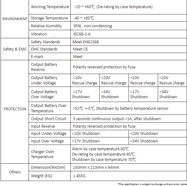 - Input / output Polarity Reversed protection by fuse